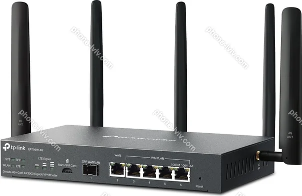- Wi-Fi 6 (WLAN 802.11a/b/g/n/ac/ax), 4x Gb LAN (4x shared), 5x Gb WAN (4x shared), 1x SFP