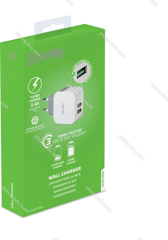 | Celly Turbo wall Charger 3.4A white - купити недорого у Львові з безкоштовною доставкою по Україні | id00385 | |
