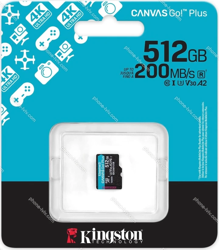 Карта пам'яті Kingston Canvas Go! Plus Gen4 R200/W160 microSDXC 512GB, UHS-I U3, A2, Class 10 - купити недорого у Львові з безкоштовною доставкою по Україні